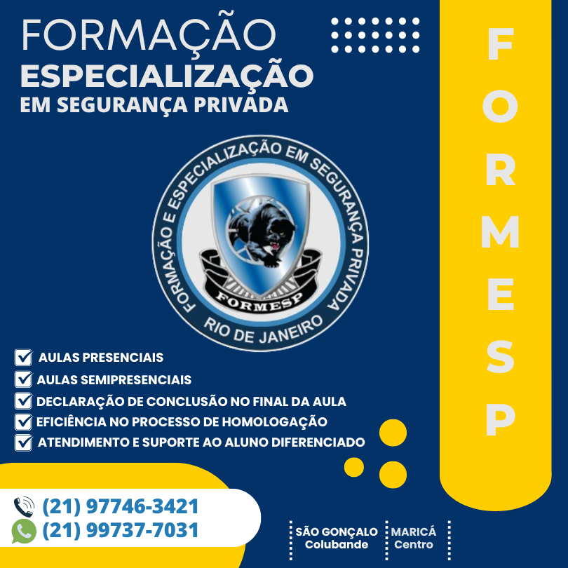 Para maiores informações nos chame no WhatsApp: 021 99737-7031 ou E-mail: formesp.rj@gmail.com