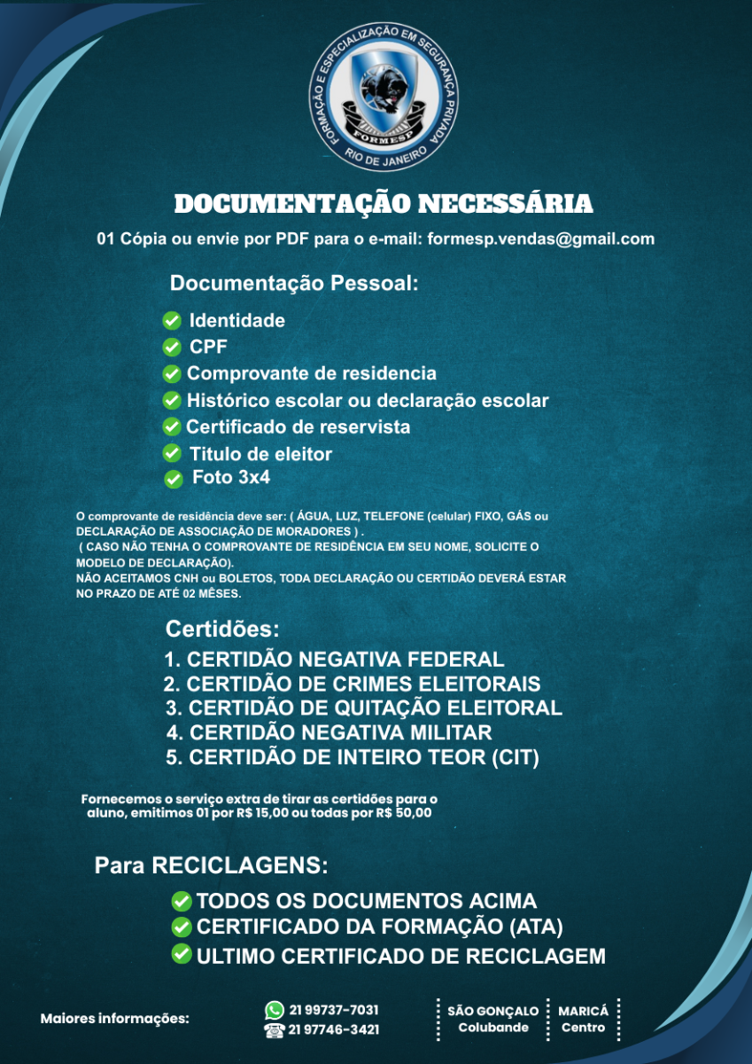 Para maiores informações nos chame no WhatsApp: 021 99737-7031 ou E-mail: formesp.rj@gmail.com