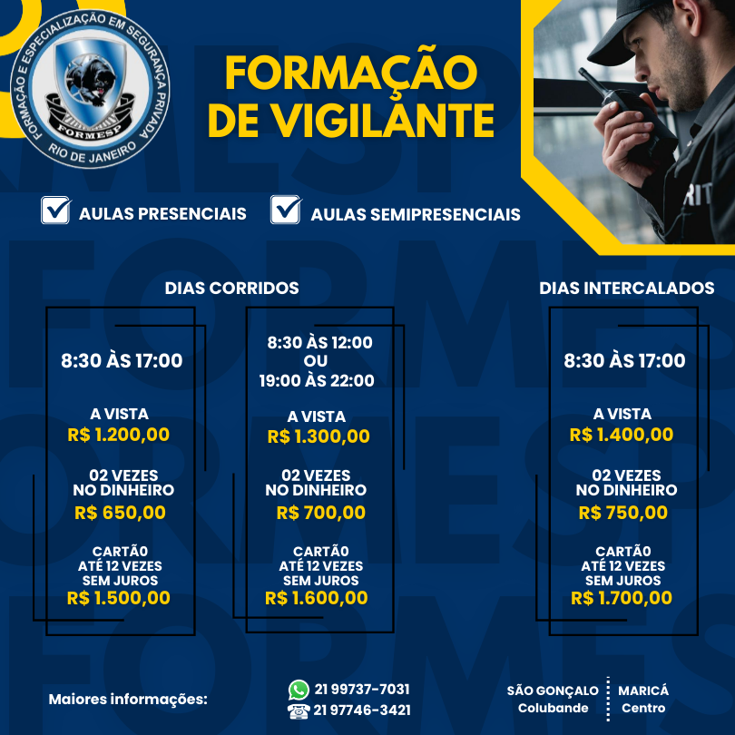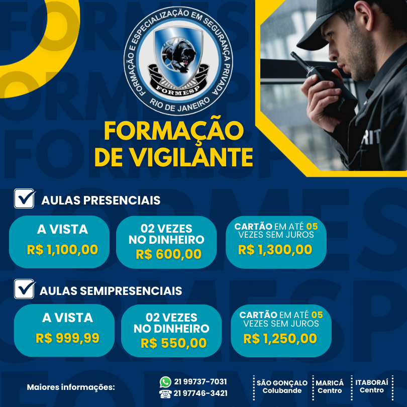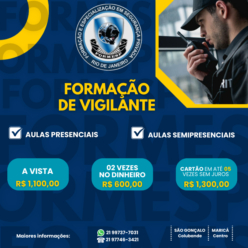 Para maiores informações nos chame no WhatsApp: 021 99737-7031 ou E-mail: formesp.rj@gmail.com
