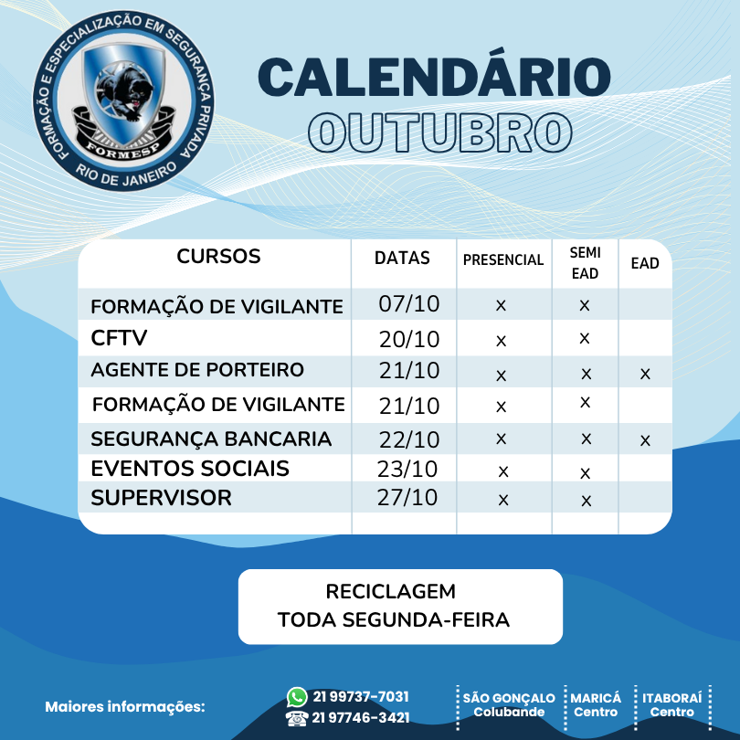 Para maiores informações nos chame no WhatsApp: 021 99737-7031 ou E-mail: formesp.rj@gmail.com